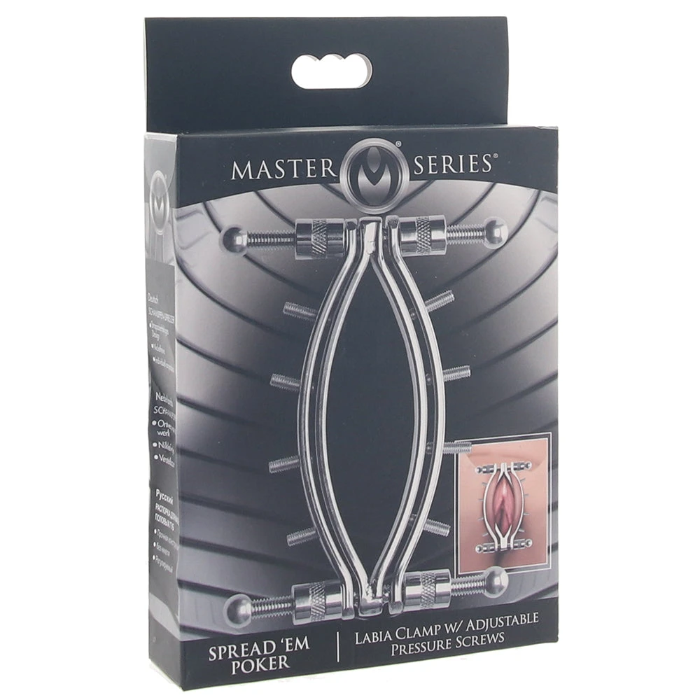 We've all heard of (or tried out) nipple clamps, yes? They're pretty standard fare in the bondage scene. Here's something that's not necessarily standard, but will definitely, ahem, open up some new play possibilities - the Master Series Spread 'Em Poker Labia Clamp.