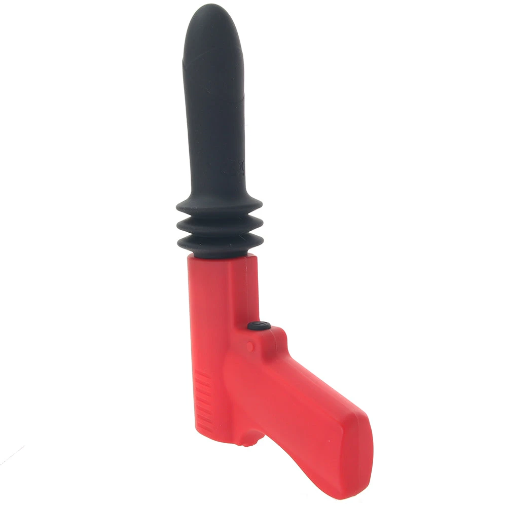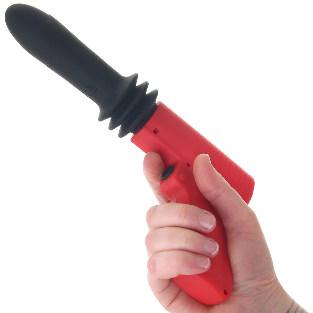 Featuring four stupendous speeds of simultaneous thrusting and vibration, the Pistol sends a silky black penetrator pounding up and down at the touch of a button. That button, by the way, was positioned for extra easy access on the firm red handle - you'll need just one finger free to control it perfectly.