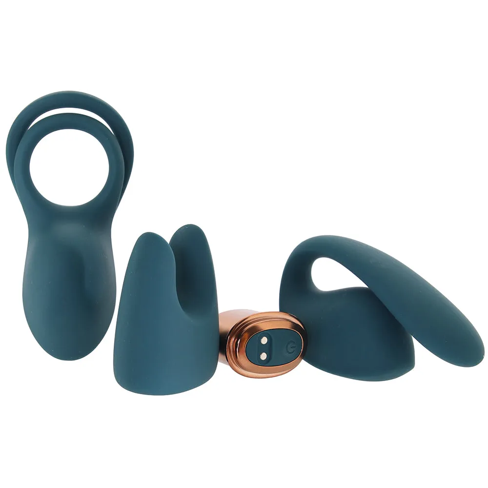 At the core of the kit, you'll find a tiny vibrating motor powering each silky silicone attachment - a set of sweet-spot-surrounding ears, a smooth plug-shaped penetrator, and a flexible g-spot curve that'll fit in your/their undies or hand.