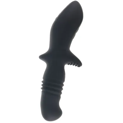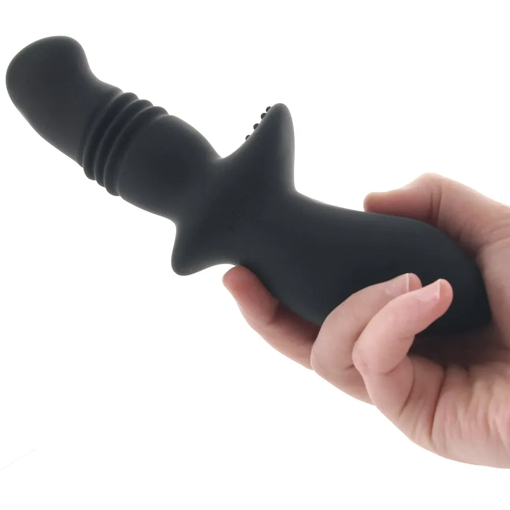 Thrusts' shaft penetrates nice and easy. Once inside, the blunt tip targets prostate glands and other sensitive inner areas as it swirls and gyrates up and down. Meanwhile, that shelf we mentioned will be free to massage from the outside. Three modes of thrusting twirls pulse and throb at the touch of a button on Thrust's easy grip base.