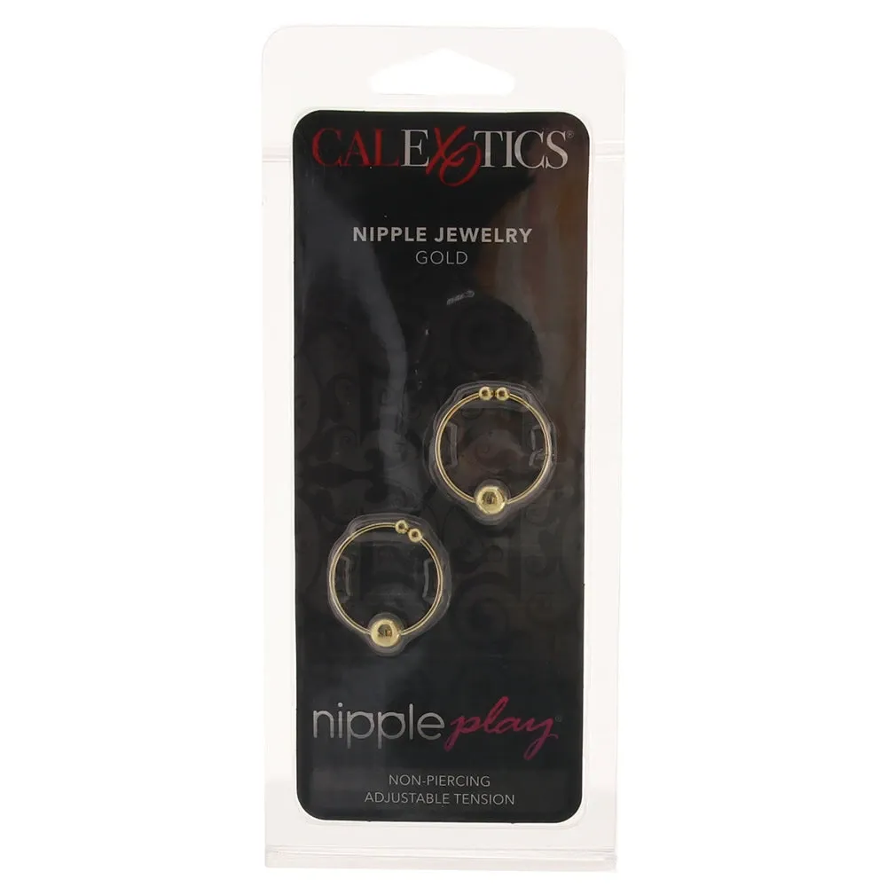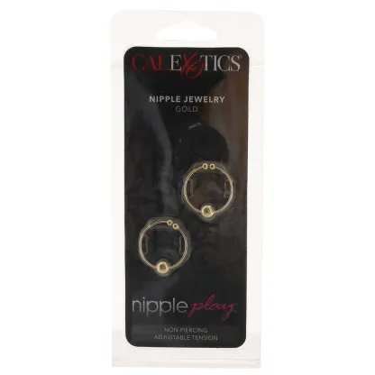A pretty, golden-hued set of non-piercing nipple rings from CalExotics, these dainty alternatives to nipple clamps, feature a tantalizing swinging bead and a sexy gleam. Plus, they provide a supreme pinch that rivals many a clamp!