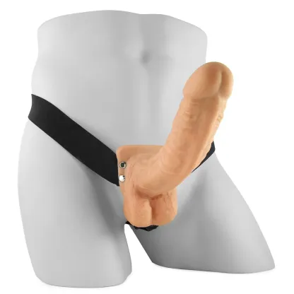 Seriously user friendly, the 9" Hollow features a super-simple design that's quick and easy to get into or out of. A soft harness with stretchy elastic waistband and a g-string style back strap slips easily over the hips, steadying a classic realistic dildo into place.