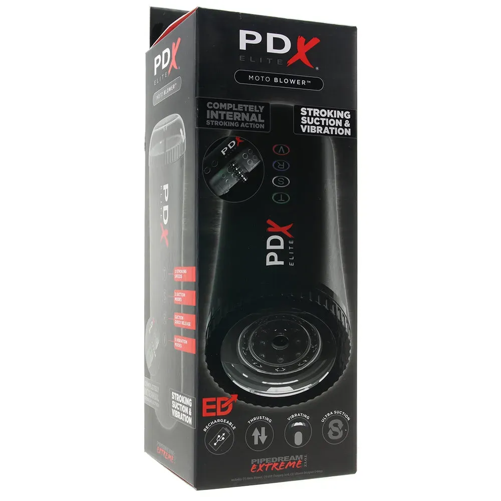 In body safe TPR and ABS plastic, the PDX Elite Moto Blower Stroker is easy to clean and refreshingly low-maintenance. Before and after play, remove the sleeve from the casing and give it a good rinse under warm water and mild soapy, You can also use a favorite toy care fluid/foam, if you prefer. Please let the sleeve dry thoroughly before popping it back into the case. The Moto Blower is compatible with any favorite water based lube. Not rated for use in water.