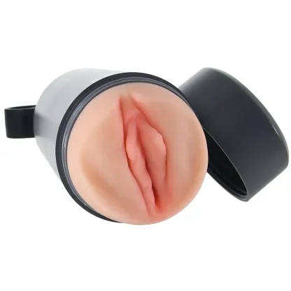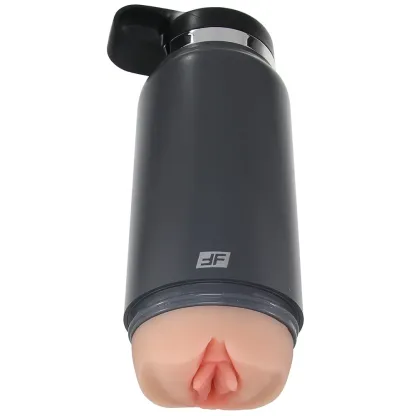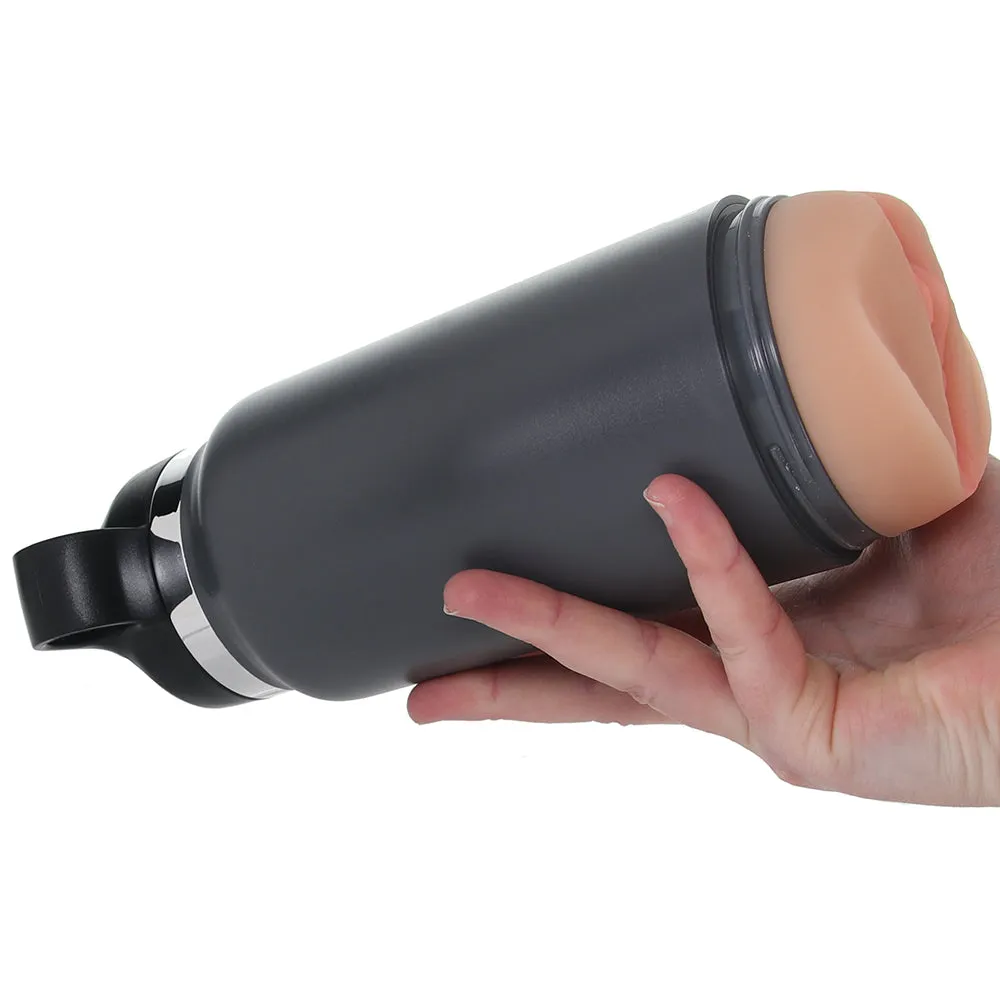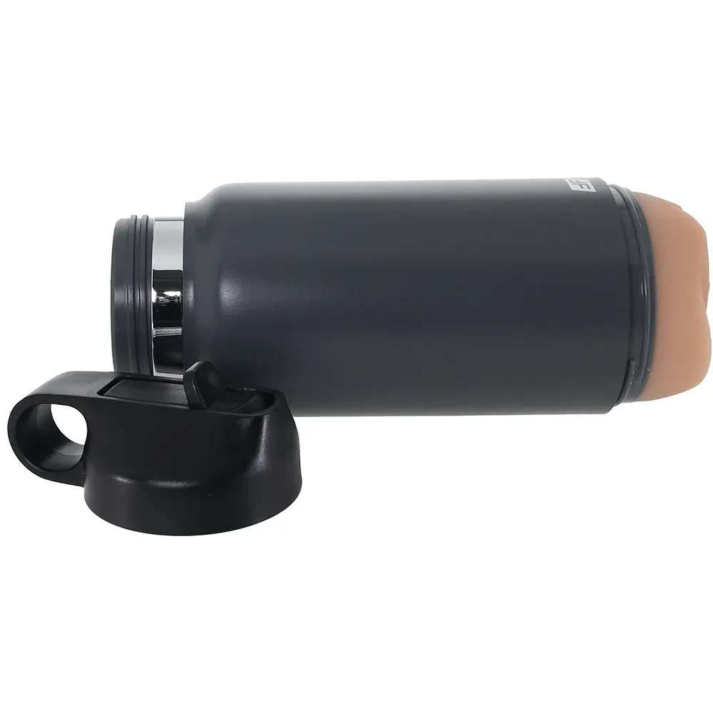 This tricky stroker comes disguised as a sturdy coffee, water, etc., traveler flask. The masturbator inside is completely camouflaged - until you pop off the base! Inside, you'll find a soft, detailed, texture-filled pussy sleeve awaiting your deep diving. The pop-up 'straw' conceals an airflow vent; leave it down for a tighter grip or up for a roomier feel. Also, the carrier cap doubles as a handle.