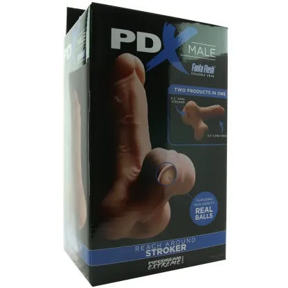 Honestly, butt sex-simulating strokers aren't hard to come by. There are lots of masturbators featuring butts out there in the world (and on our site), and most of them are great! However, many of those fine strokers do not include a cock to play with. This one does! Reach for Pipedream Extreme's Reach Around when you or your penis owning partner is looking for a super-lifelike shape, lots of textured length, and some squeezable, ultra realistic balls for good measure.