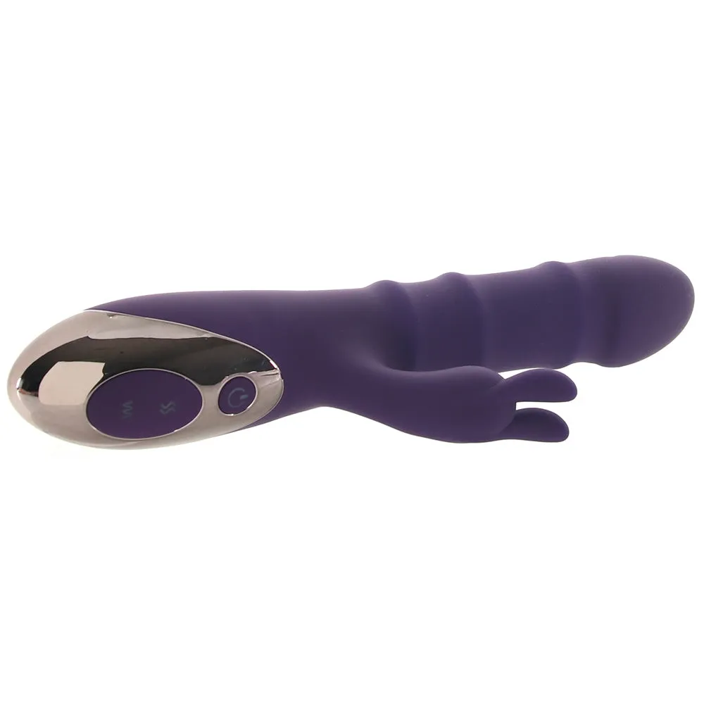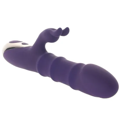 First off, Hop To It showcases a very special, super sexy slider mechanism that sends the shaft gyrating up and down as three firm rings glide over the length. Along with that very noteworthy pleasure point, it comes complete with ten modes of vibration synced between the penetrator and a classic bunny-shaped outer stimulator.