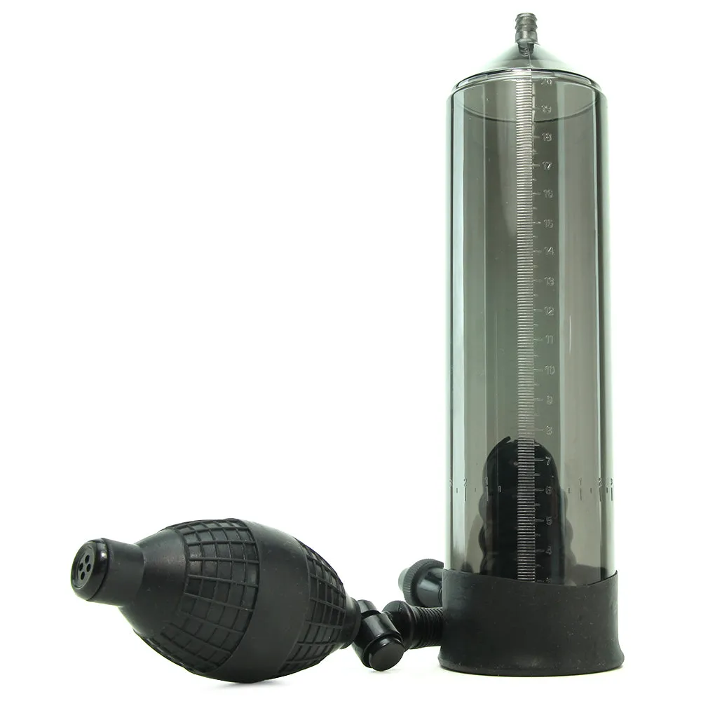 Firm and stable, the sleek pump chamber is surrounded at its entry point by a soft, stretchy latex sleeve to cushion and protect during use. Once comfortably in place, simply squeeze the pump ball to activate suction and watch the penis in question swell to full firmness potential.