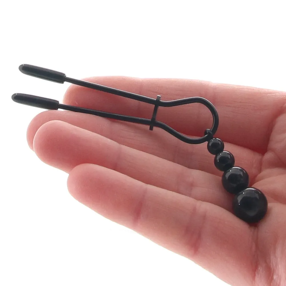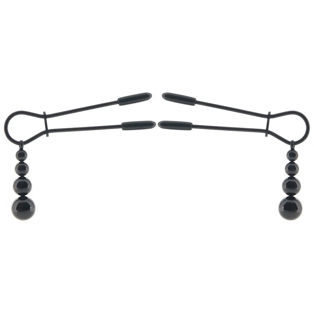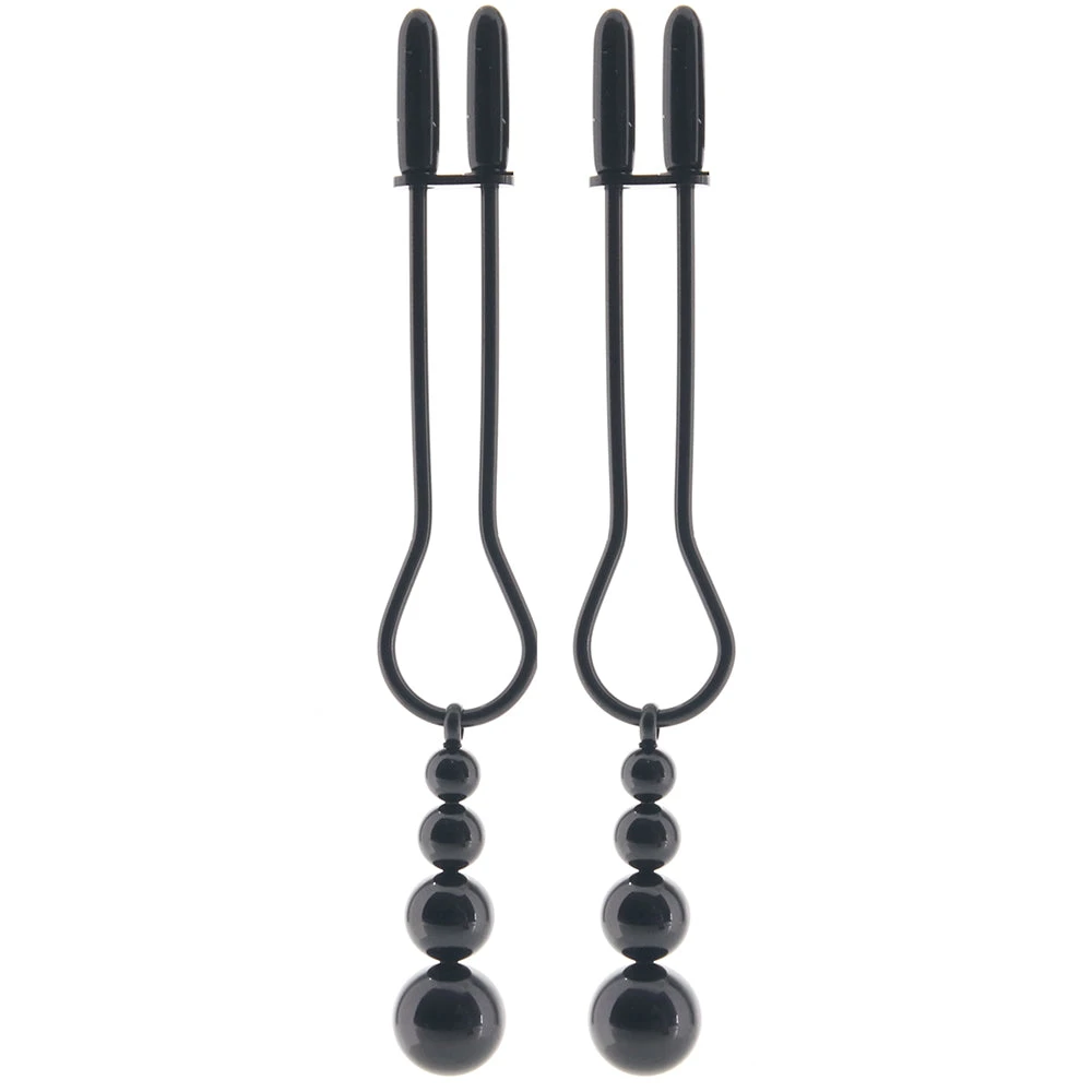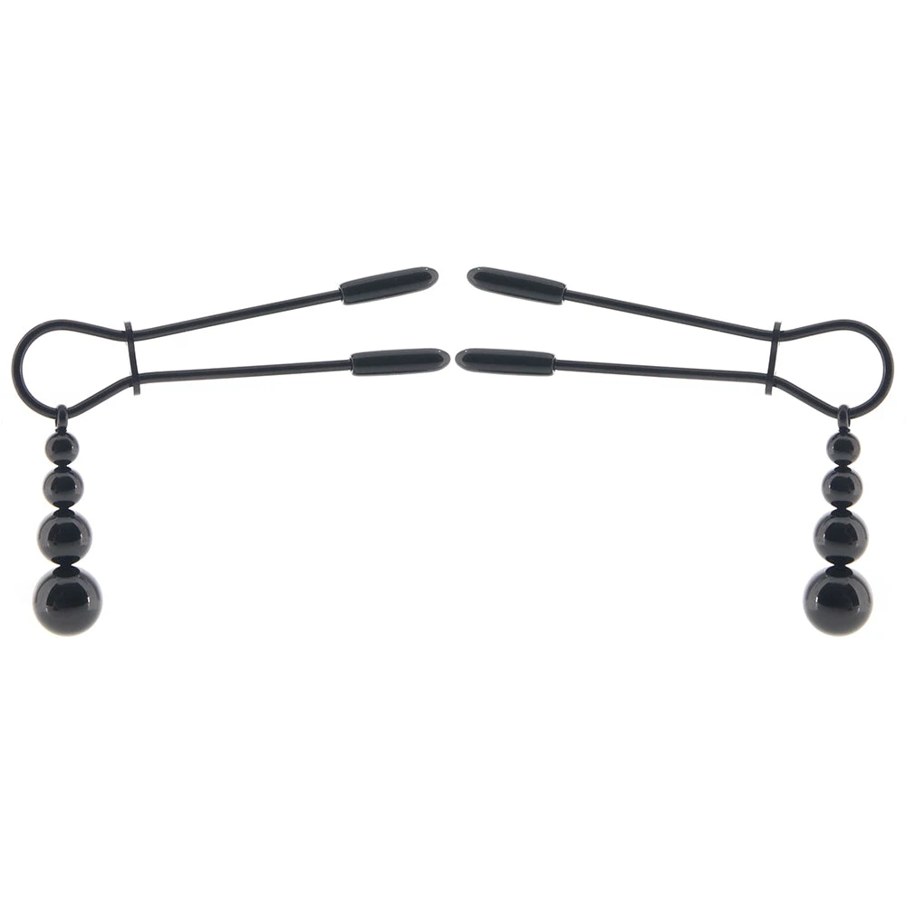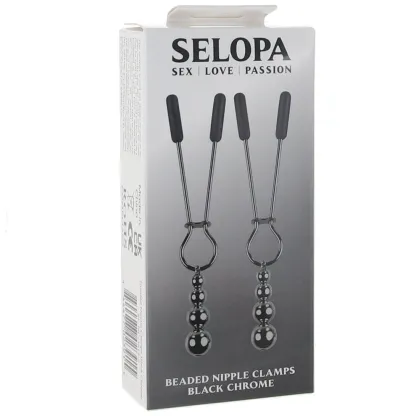From Evolved's Selopa collection, the Beaded Nipple Clamps feature a simple, straightforward design and hypnotic swinging beads in great-looking black chrome.