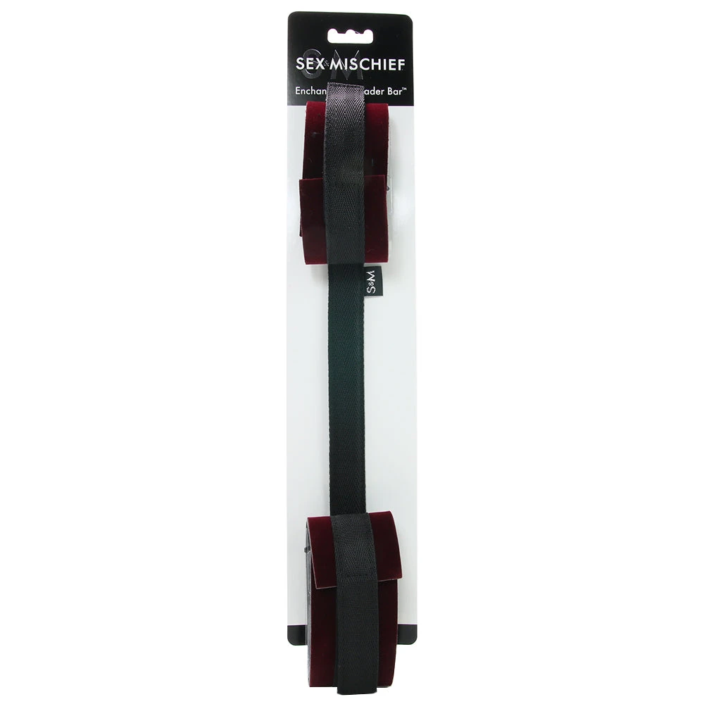Restraining a playmate in ever-classy fashion while steadying and supporting various compromising positions, the merlot velvet Enchanted Spreader Bar enables a multitude of devious doings at home or away.