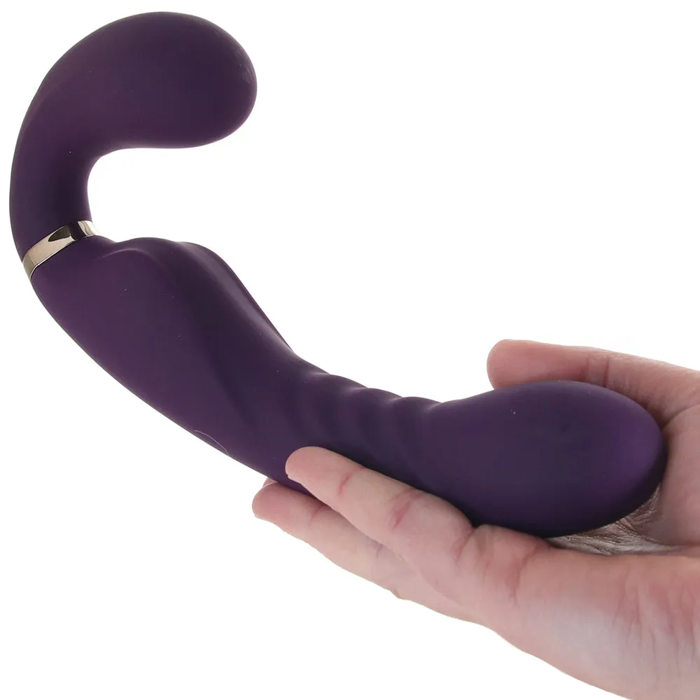 At one end, you'll find a far-reaching silicone penetrator with lots of ripple texture and a tireless, orgasm becking 'come hither' motion. On the other is a smooth bulb that, combined with the wearer's pelvic floor muscles, holds Share The Love in place - no straps required! You can absolutely use it with a favorite harness, though, if you'd like.