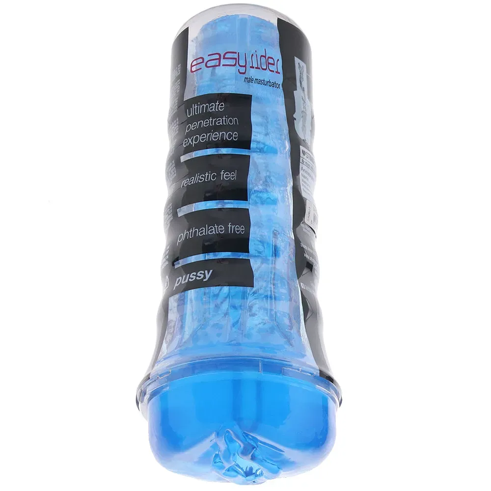 Featuring a trusty handheld design and tons of deep, massaging texture that grips tighter the deeper you thrust, Shots' Easy Rider stroker lends its 100% portable design to you (or your handy partner) for quickies, one-offs, or more drawn-out sessions. Oh, and the crystal blue material magnifies the cock inside, FYI!