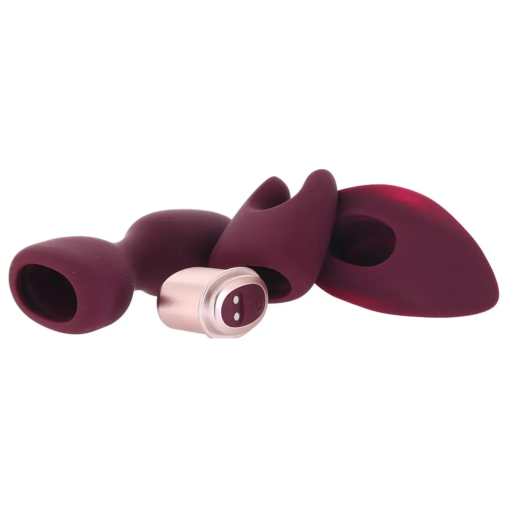 At the core of the kit, you'll find a tiny vibrating motor powering three silky silicone stimulators - a set of sweet-spot-surrounding ears, a smooth plug-shaped penetrator, and a contoured vibe that'll fit very enjoyably in your/their undies or hand.