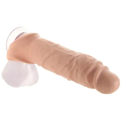 Slipping easily over a penis or object of penetrative desire, the sleeve stretches easily to cover the majority of your/their shaft, depending on individual size, of course. Very full in terms of coverage, the RealRock 9" protects sensitive penis tips from over-stimulation.