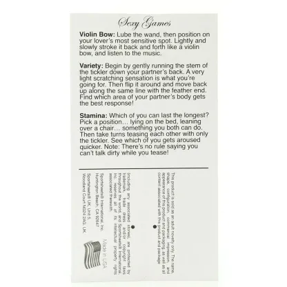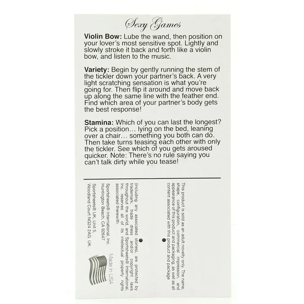 A completely gorgeous, delightfully tickly sensual accessory from Sportsheets, the Starburst Feather Tickler thrills with supremely teasing ease. There are countless ways mates can make use of the Starburst, try pairing it with a blindfold and lightly dragging the silky feathers over an object of desire's skin as foreplay, the whisper soft touch will ignite nerve endings as it sets the mood for pleasure to come.