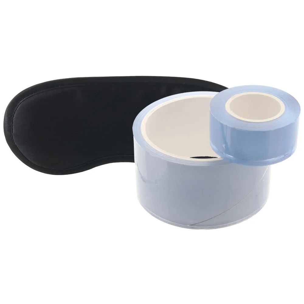 As we mentioned, the shiny Tape sticks only to itself, so you won't have to worry about pulling it off painfully; plus, you can re-use it over and over. To give you a few ideas, Bondage Tape can bind up wrists and ankles, be fashioned into a hogtie, be used as a body wrap, or looped around your bedposts. A classic black silky blindfold is included - do with it as you will!