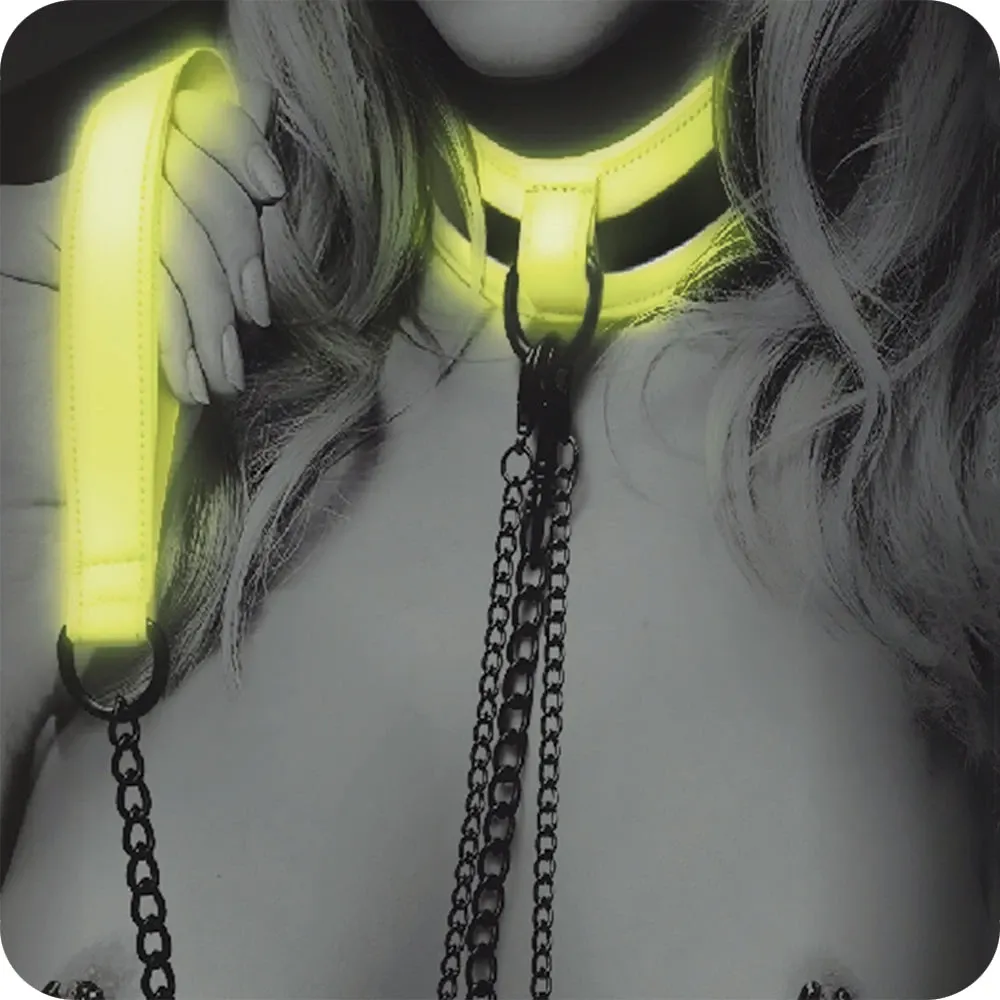 Collars are fun! Leashes are also fun. And nipple clamps? Definitely. This glowing trio from WhipSmart combines all three fun-bringers in a spectacular set featuring interchangeable or standalone versions of each.