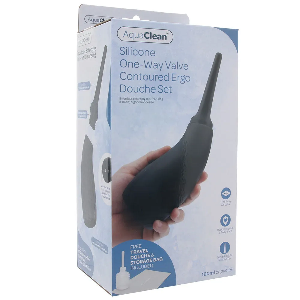 Like to feel a little cleaner than usual before getting in some butt play? Want your sanitation session to be quick and hassle-free? Sure you do! AquaClean's Contoured Silicone Douche Set is ready to rock anytime/anywhere, AND its one-way valve banishes messy backflow.