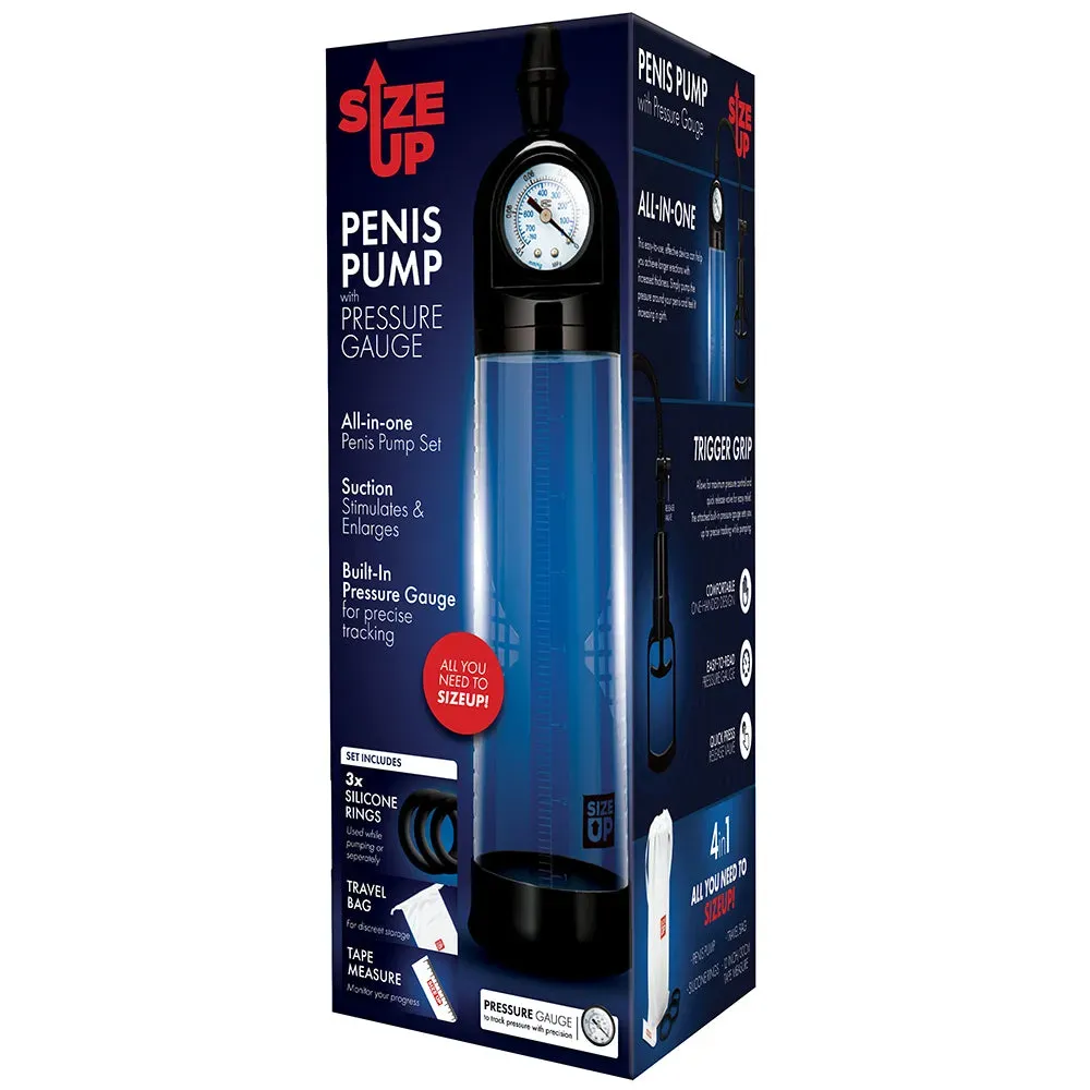 Generally speaking, we all want to be our best selves, right? Some folks call that 'putting your best foot forward', but in the case of the Size Up Pressure Gauge Penis Pump, you'll actually be putting your best penis forward. That's right, the Pressure Gauge was designed to help you or your penis owning partner reach your/their, ahem, fullest potential AND give you lots of information along the way!