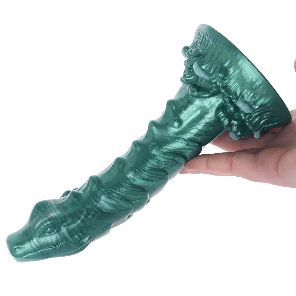 Forget the monsters under your bed - you'll want to keep an eye on the monsters in your bed - especially if it's the Cockness Monster from Creature Cocks! Aside from its otherworldly metallic green color, this not-at-all human dildo features some seriously creative, extra bumpy texture and a sexy serpentine shape that's tapered up top - all the better to seek, find, and scarily stimulate your or their sweet spots.
