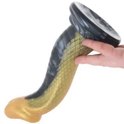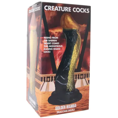 We all know that venomous snakes probably/definitely shouldn't be anywhere near your or your partner's body, yes? But maybe you've wondered what it'd be like to have pure danger slithering inside you. If so, Creature Cocks has all your serpentine fantasies covered - safely! - with the Golden Mamba Dildo.