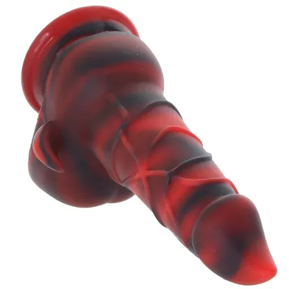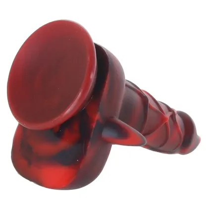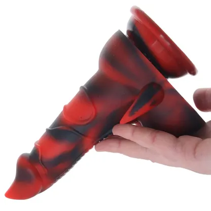 Rising from the inferno (or your toy chest), this bright red and black troublemaker features a sleek, flame-inspired tip, tons of scaly ribbed and swirly texture, and some horn-studded balls below. You can hold it, have a partner do the honors, or play hands-free - the base is a sturdy suction cup. Stick it to windows, walls, countertops, or the floor for a hands-free ride. Speaking of the base, it's extra thick - safe for anal play and extra deep diving - and compatible with strap-ons and harnesses.