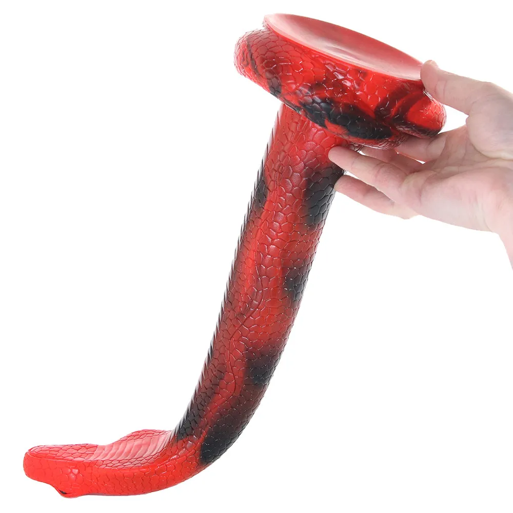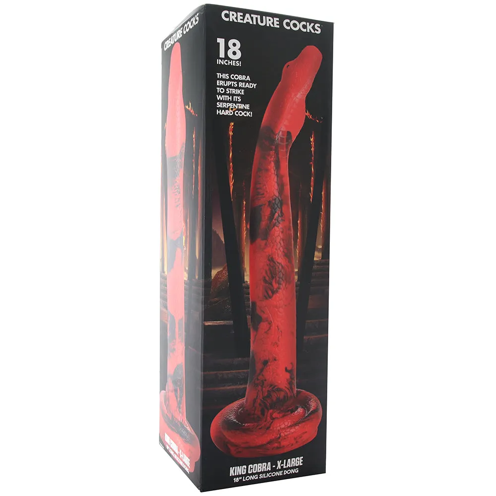 There are many places a (very large) venomous snake probably/definitely shouldn't go, and into your or your partner's body is high on the list. Nevertheless - maybe you've wondered what it'd be like to have a danger noodle slithering inside you? Creature Cocks has your serpentine fantasies covered - safely - with the King Cobra X-Large Silicone Dildo.