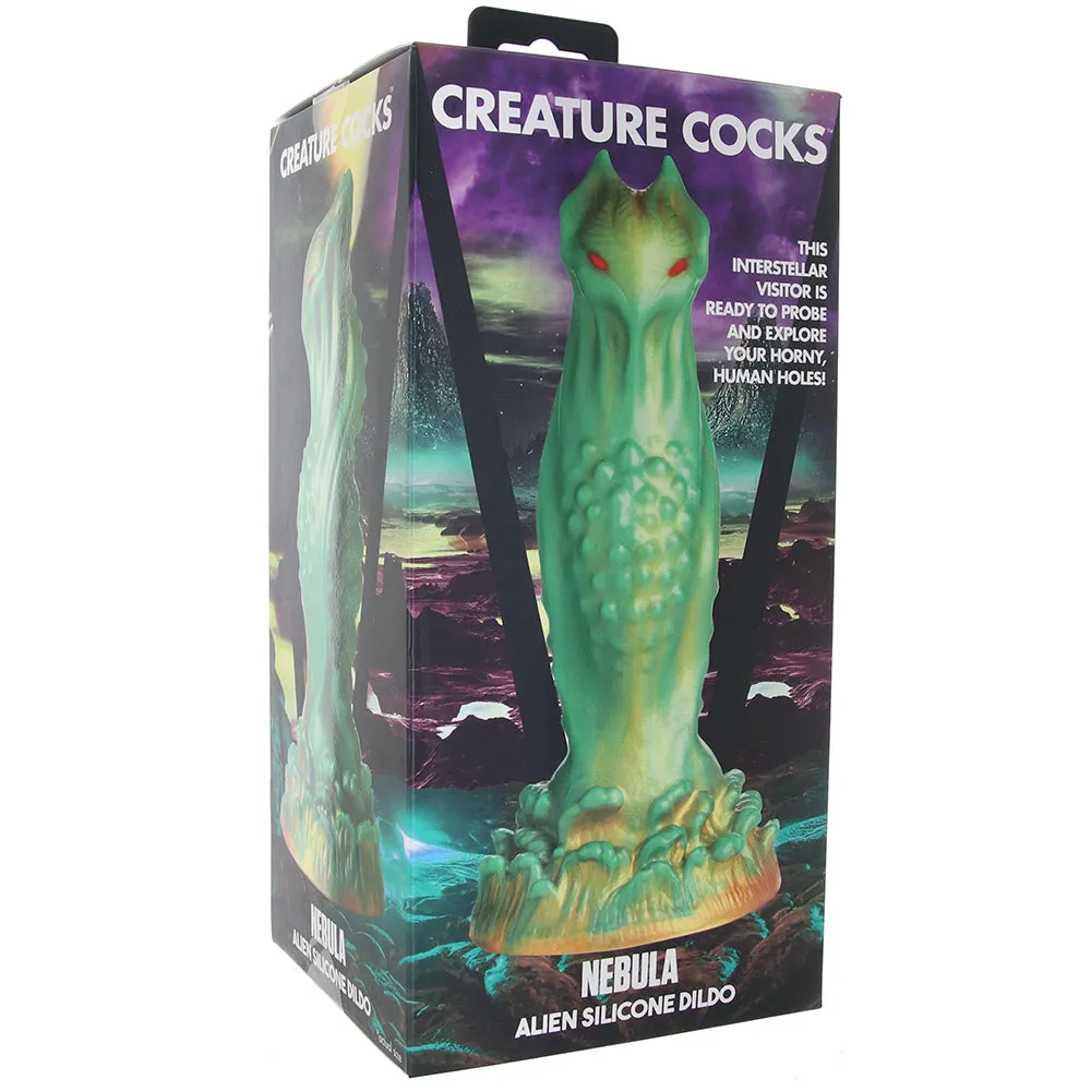 The Nebula comes to you in pure, hypoallergenic silicone that's body-safe and easy to clean and care for. Wash it with soapy water or a favorite toy care fluid/foam before and after. Feel free to use any water-based lube you love with your Creature Cock, but please keep it away from silicone-based lubes and other silicone toys/products.