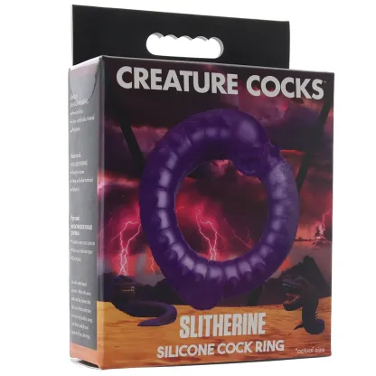 In pure, hypoallergenic silicone, Slitherine is body-safe and easy to clean and care for. Wash it with soapy water or a favorite toy care fluid/foam before and after. Feel free to use any water-based lube you love with your Creature Cock Ring, but please keep it away from silicone-based lubes and other silicone toys/products.