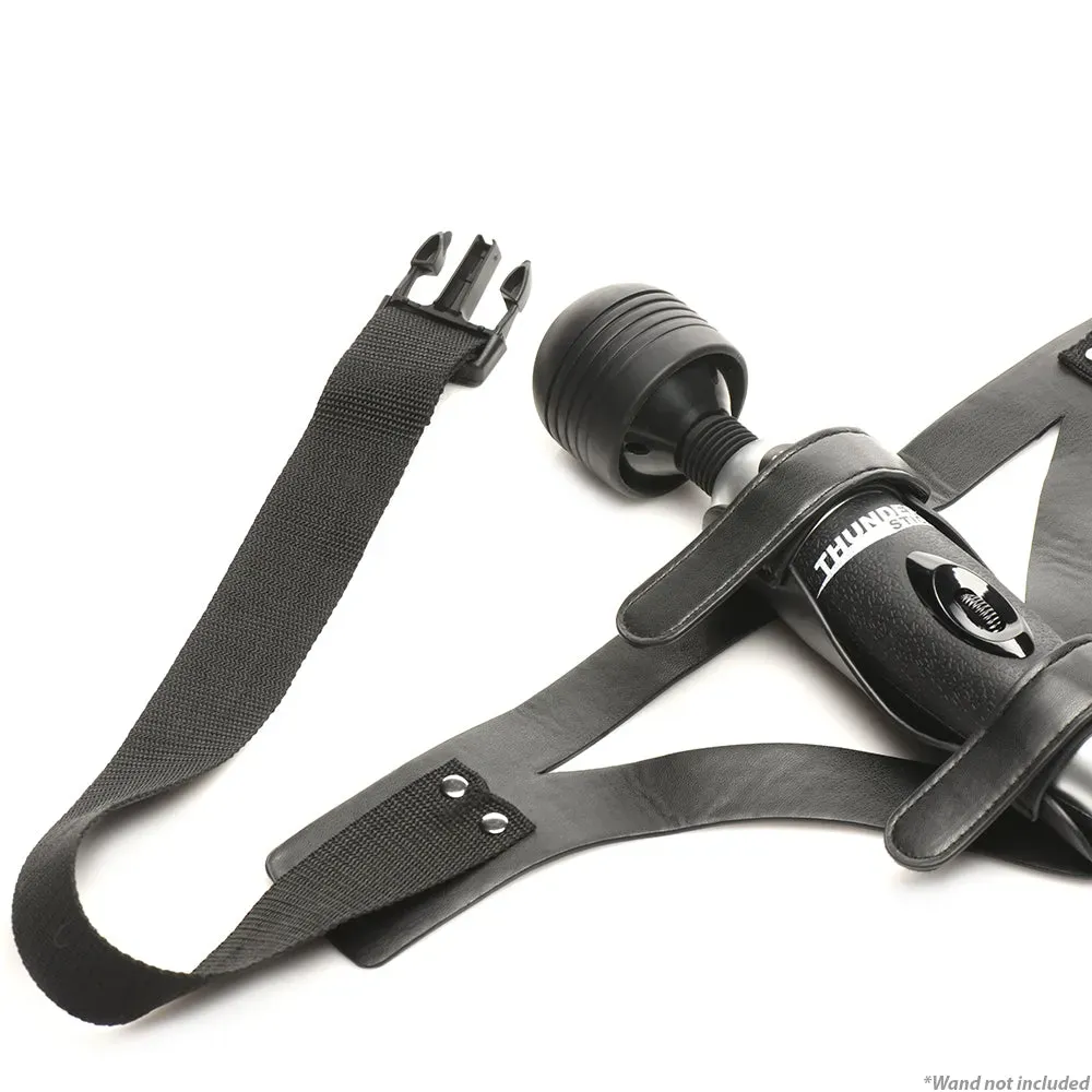 You know what can be annoying about a favorite massage wand? Well...nothing, actually, but holding it in place until the job's done (i.e., you or they have an orgasm, obviously!) isn't always super fun. Enter Bedroom Bliss and the Thunder Strap Wand Thigh Harness.