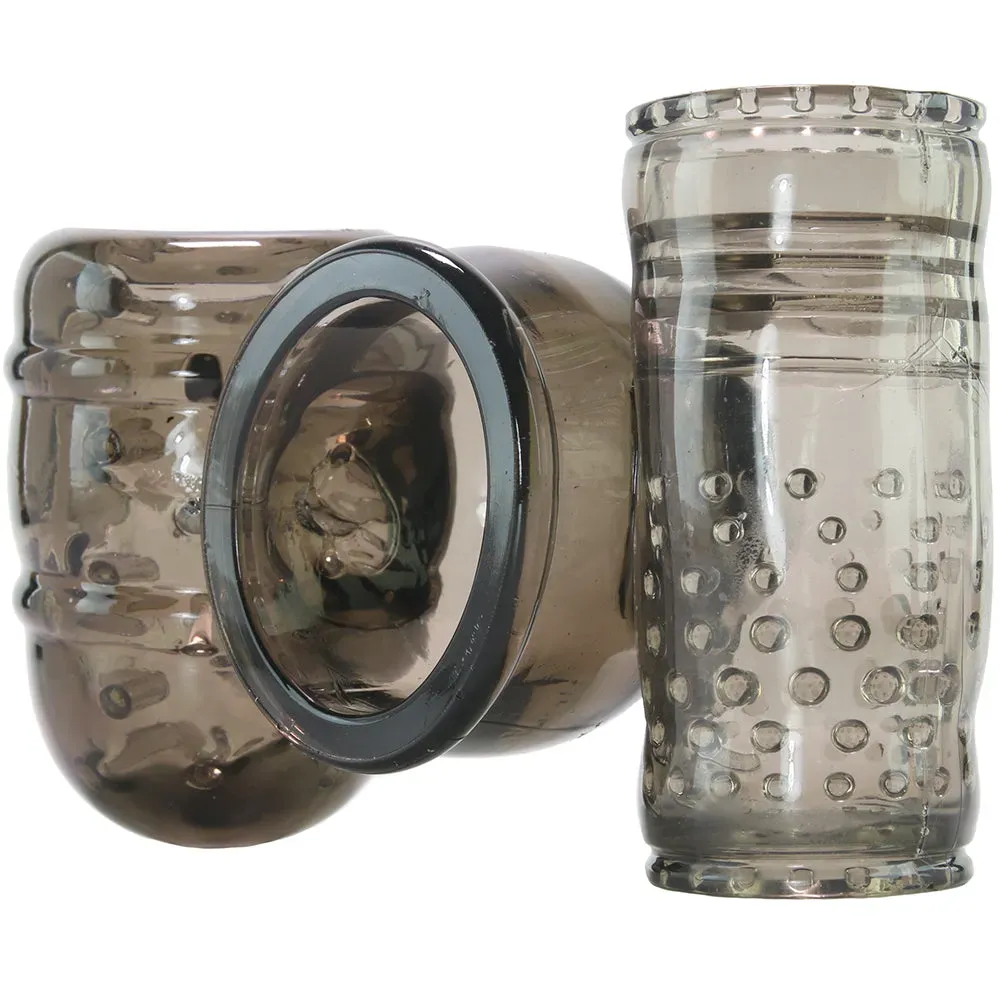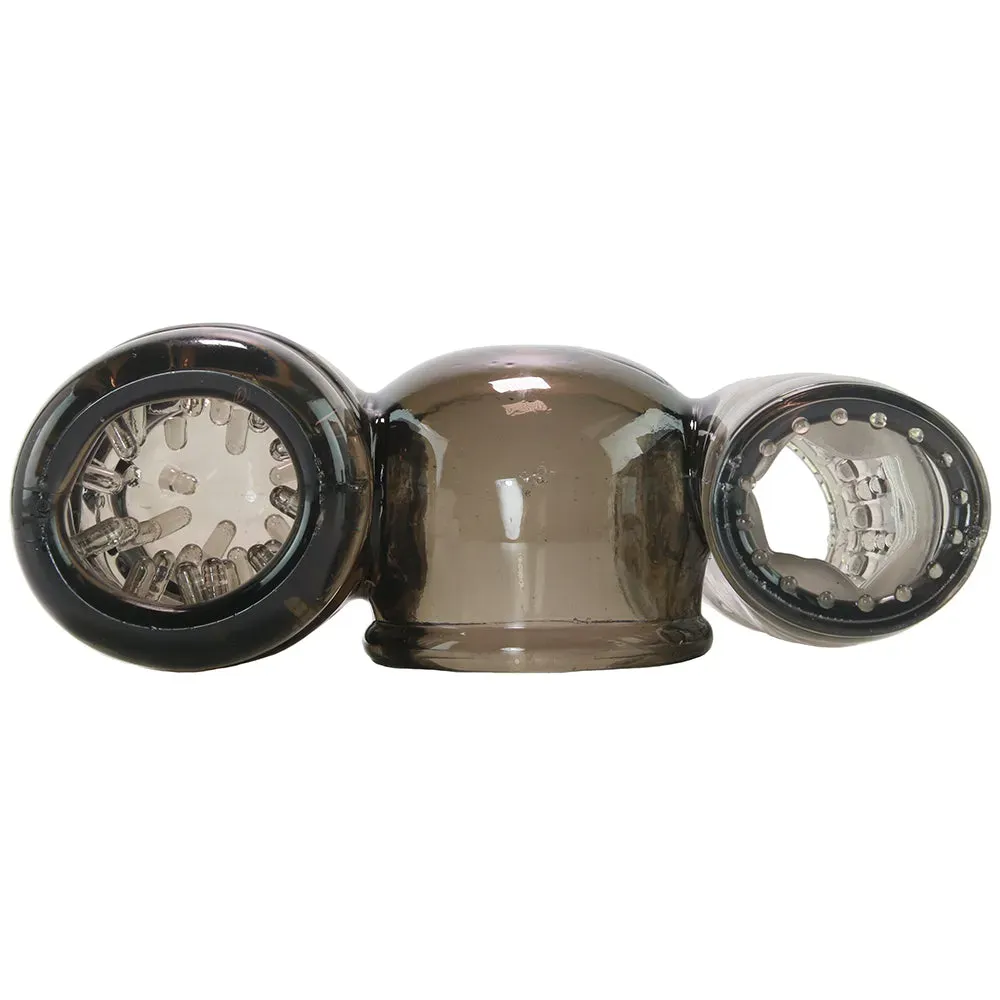 Two possible points of entry wait to buzz and throb along with vibration, the 3.75" closed end cups the head of the penis, surrounding sweet spots with tons of soft ticklers while the 3.5" textured open end can be stroked, twisted and turned over the entire shaft.