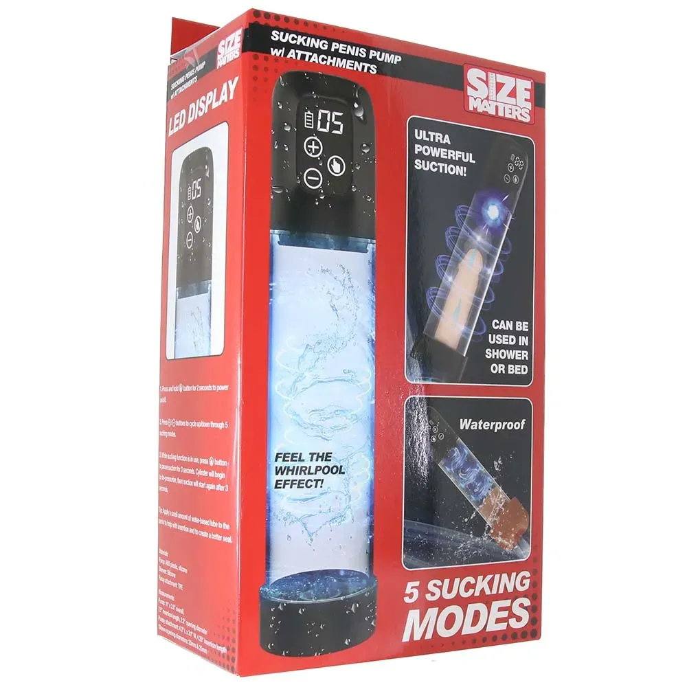 What could make a sturdy, super-strong pump with automatic suction even better, you ask? A super-sex interchangeable pussy sleeve AND a fully waterproof design, obviously! Size Matters' Sucking Penis Pump has it all.