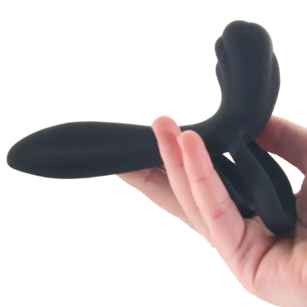 Slipping over your/your partner's shaft or strap-on and looping over your/their balls or a toy's base, the Enhancer's two positioning rings holds tight to help reign in a hard-on. Meanwhile, a super smooth silicone half-sleeve up top adds plenty of extra thickness, vibration and effortless partner-focused clitoral/perineum/outer sweet spot stimulation. Never fear, you'll both definitely feel the buzz thanks to two synchronized motors.