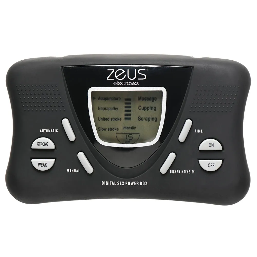In body safe silicone, ABS plastic and nickel-free conductive metal, all pieces of the Zeus Deluxe E-Stim Kit are easy to clean, and a breeze to maintain. Please be sure to read the included instructions fully before using. The power Box requires 3 AAA batteries (sold separately). Not for use in or around water.